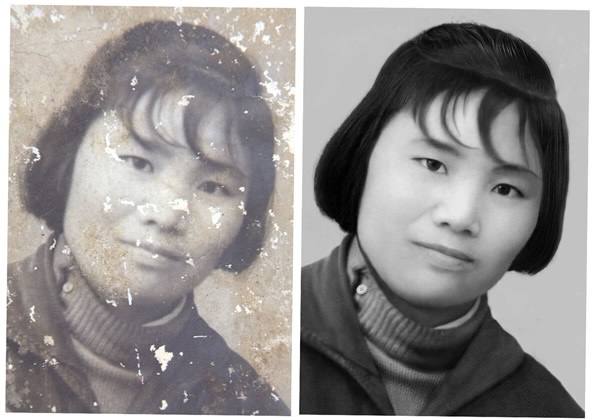 对于特别破烂的老照片修复,又是绒面的,带布纹或斑点的。就要用翻新的手段来处理,全面的修整照片,要不就会出现脏兮兮的感觉。为了尽量避免照片做得像平面,可以在后期处理上下功夫。比如添加杂色或移植皮肤层等等,把照片做旧。结合色彩的渲染和背景的处理可以让照片在保持原有相貌不变的情况下焕然一新。当然我们做照片要尽量保持它的历史价值能不换背景的尽量不换,能不改变色彩的尽量不改变。那些不能用简单工具修补的照片尽量不要拿去修(比如需要手绘处理的过程越复杂 变形的可能就越大),扫描到电脑保存就可以了。但每个人的想法不同,顾客的想法千差万别,破坏程度比较大的照片有的你要想保持原貌是很难的。