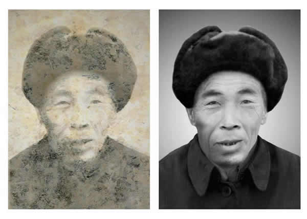 高级修复: 原图保存不好,破损面积较大模糊程度严重,这样的照片只能参考原图信息,作全面的翻新,当然原图清晰的也可以做高级修复,因为看的更准确,做出来的效果也越好,高级修复是目前老照片修复中难度比较大的一种技术,利用移植,合成等多种技术结合 还得有绘画欣赏修复能力和扎实的PS基本功才能完成,因为工絮太过复杂,要用到大量的素材,所以高级修复只针对单人半身的老照片,全身的涉及时间素材和客人承受能力的问题 一般都不做高级修复。